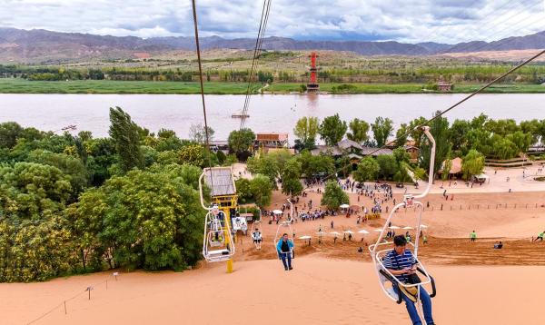 中衛(wèi)市城區(qū)以西16公里的大漠黃河(沙坡頭)旅游度假區(qū)自20世紀(jì)80年代開始運營,這些年陸續(xù)推出了沙漠駱駝騎行體驗、滑沙、沙漠蹦極、滑翔翼飛躍黃河等旅游體驗項目。羊皮筏子是黃河上游沿岸傳統(tǒng)的水路交通工具,因此羊皮筏子漂流也是一個特色項目。