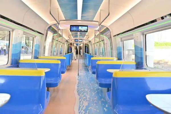 三樂旅游鐵路共有“鳳舞九天”“天涯海角”“回首之約”三個系列和“活力海洋”“椰風海韻”“走進三亞”主題車廂,動車組外觀內飾定制化設計融合了三亞特色,創(chuàng)意十足。同時,開創(chuàng)性地配備自助咖啡奶茶機、啤酒機、AI拍照打卡機,以及無線充電等智能服務設施,為市民游客帶來全新的乘車體驗。三樂旅游鐵路還于近期啟動了“流動的美術館”“空投計劃手工體驗”“live列車音樂會”“流動的博物館”等車廂系列文化活動,將音樂會、美術展覽、手工體驗等藝術活動“搬”上高鐵,讓文化、科技與旅行完美融合,將車廂打造成為一個流動的藝術空間,為旅客們送上誠意滿滿的藝術“大禮包”,進一步豐富旅客的出行體驗。