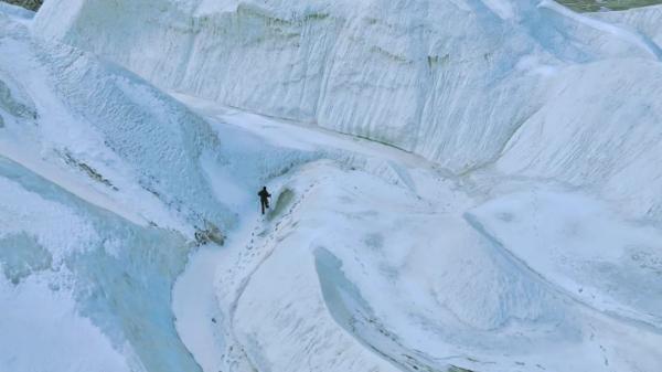 隨著海西蒙古族藏族自治州冬春季旅游系列活動拉開帷幕,地處柴達(dá)木盆地北緣、祁連山系吐爾根達(dá)坂山東端的敦德冰川成為眾多越野和攝影愛好者的詩與遠(yuǎn)方。敦德冰川又稱敦德冰帽,是西北地區(qū)最大的平頂冰川,面積達(dá)57.07平方公里,其頂部海拔達(dá)5290米。圖為游客拍照。
