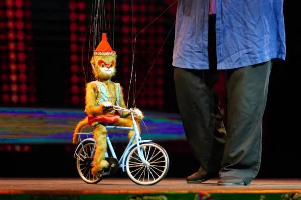 還有許多巧思藏在細(xì)節(jié)中。《猴趣》演員沈蘇革舉起手中的猴子木偶說:“現(xiàn)在的舞臺較大,為了讓更多觀眾看到木偶頭部細(xì)節(jié)表情變化,需要不斷改良木偶細(xì)節(jié)。這個猴子木偶頭的五官更加突出、嘴巴和眼睛的開合幅度更大、制作猴毛的材料更長、質(zhì)感也更好,舞臺上的表現(xiàn)力更強。”
