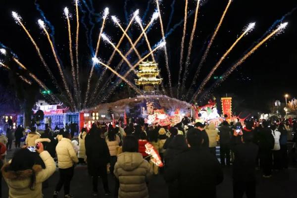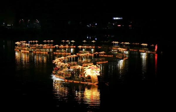夜幕降臨,華燈初上。近兩年成為黃山文旅產(chǎn)品爆款的百米金龍從流光溢彩的橫江中蜿蜒游來。除了集中展示的如愿燒火塔、齊云打鐵花、白岳煙花秀外,還有噴火、炭花舞、齊福儺舞等節(jié)目,火花、煙花交織,展現(xiàn)出齊云山度假區(qū)煥新出發(fā)的力量,照射出“越夜越精彩”的休寧魅力,更折射出新一年狀元休寧向上向新的力量。