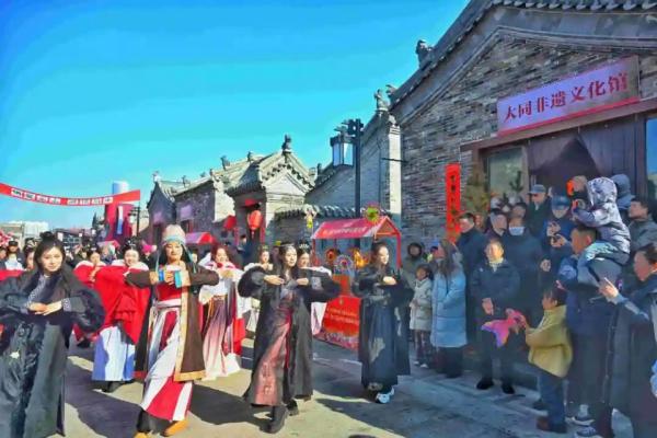 在冬季,大同清爽的空氣、澄澈的藍(lán)天、晶瑩的冰雪,更讓四海賓朋來大同的經(jīng)典古建之旅格外心曠神怡、融景融情。為促進“淡季不淡”,大同市加速培育文旅新場景,“+旅游”“旅游+”多業(yè)態(tài)深入融合,新業(yè)態(tài)、新場景亮點頻出?!奥糜?/span>+演藝”,古都燈會現(xiàn)場及代王府沉浸式實景演藝,讓游客欣然享受大同文化大餐;“旅游+冰雪”,以萬龍白登山國際滑雪場為代表的眾多冰雪旅游場所,讓游客倍感大同同樣晶瑩閃耀的冰雪文化魅力;“旅游+康養(yǎng)”,大同豐富優(yōu)質(zhì)的溫泉資源,讓游客潤身暖腑、頤養(yǎng)健康,并與大同特有的優(yōu)質(zhì)農(nóng)產(chǎn)品和地道中藥材資源結(jié)合, 讓“康養(yǎng)大同”為大同文旅注入新的動能和活力。