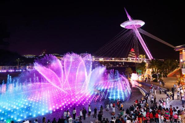 景區(qū)內(nèi)設(shè)有水幕電影噴泉秀、全球美妝博物館、藝術(shù)連廊、環(huán)島觀光木棧道等特色景點(diǎn)。2025年五一期間,C區(qū)廣場(chǎng)更化身為“戶外運(yùn)動(dòng)街區(qū)”,以海島網(wǎng)球熱力場(chǎng)為核心場(chǎng)景,集結(jié)11家戶外品牌,搭配酒水派對(duì)和巡游演繹,打造潮流運(yùn)動(dòng)新體驗(yàn)。
