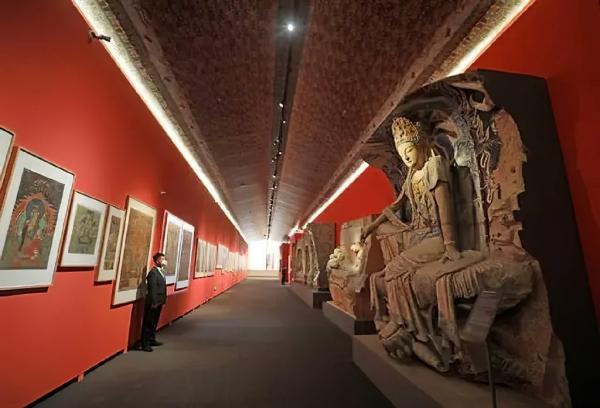 展廳內(nèi),被譽為“東方維納斯”的紫竹觀音像通過3D打印技術1:1復刻,游客無需跋涉50公里外的毗盧洞即可近觀其衣袂飄動的細節(jié)。Mapping投影與互動長卷技術將華嚴洞三圣像、臥佛院釋迦涅槃像等經(jīng)典造像動態(tài)重現(xiàn),游客可透過手勢感應觸發(fā)佛像“自述”前世今生,或通過腦機設備將腦海中的佛像具象化呈現(xiàn)。