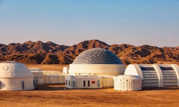 在甘肅金昌市郊的紅巖戈壁,一片形似外星的地貌上,火星1號基地靜靜矗立。太陽能板、星空帳篷和火星探測器散布在赤色巖壁上,營造出強(qiáng)烈的異星穿越感。