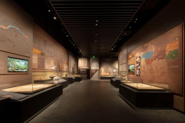 下沉式空間:建筑整體融入遺址公園環(huán)境,保留遺址完整性和連貫性。當游客緩步下行進入展廳,仿佛踏入考古發(fā)掘現(xiàn)場,開啟一場“仰望星空”的文明溯源之旅。