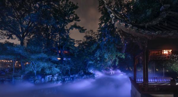在拙政園,《拙政問雅》夜游項目圍繞園林景點,融入“月”的意象,通過燈光藝術(shù)、投影互動、聲境營造等現(xiàn)代媒體藝術(shù),打造沉浸式體驗。游客可在此欣賞昆曲《牡丹亭》,感受與古人同享月下園林的意境。