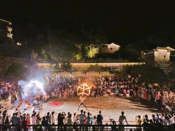 2025年7月27日,石浦漁港迎來歷史性時刻——古城二期在“山海夜有戲×漁光煥新周”中煥新開街。這場藝術(shù)盛宴徹底顛覆了傳統(tǒng)古鎮(zhèn)的靜謐印象,上海造夢馬車劇團(tuán)攜蒸汽朋克劇目《墨家游俠》登陸,3米高蹺俠客身披機(jī)械齒輪裝飾,在青石巷陌間化身移動地標(biāo),電子音浪與民樂清音在古墻間碰撞,泡泡音樂派對讓百年老街變身露天迪廳,巨型飛魚空飄裝置游弋夜藝術(shù)展將非遺元素轉(zhuǎn)化為潮流符號。