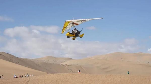 在敦煌鳴沙山月牙泉景區(qū)入口處,等待體驗低空飛行的游客排起長隊。貴州游客張女士剛結(jié)束八分鐘的飛行體驗,興奮地向同伴展示手機拍攝的空中全景:“在下面根本看不到月牙泉全貌,飛到上面才看清它像一彎真正的月亮鑲嵌在沙漠里!”