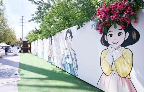 近日,中國(guó)朝鮮族民俗園美食街新增一處亮眼景觀——美辰打卡墻。墻上繪制了7名身著朝鮮族傳統(tǒng)服飾、頭頂各式鮮花裝飾的少女形象,吸引了眾多游客駐足拍照,成為園區(qū)又一熱門打卡地。這一創(chuàng)意源于延邊春天傳媒項(xiàng)目團(tuán)隊(duì)在網(wǎng)上看到的一幅老墻繪畫作品。畫面中人物與墻面環(huán)境的融合感給了團(tuán)隊(duì)靈感,他們?cè)诖嘶A(chǔ)上延伸思考,結(jié)合民俗園的文化特色,決定以朝鮮族服飾為核心元素,打造美辰打卡墻。傍晚時(shí)分,中國(guó)朝鮮族民俗園美食街的美辰打卡墻前,仍聚集著拍照的游客。