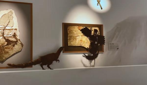 在上海自然博物館內(nèi),“龍吟九州·中國恐龍大展”展廳運(yùn)用先進(jìn)技術(shù),讓人們裸眼看見中生代時(shí)期不同地貌環(huán)境下緩緩移動(dòng)的恐龍。小觀眾揮動(dòng)手勢,就能給不同種類的恐龍投喂食物;觀眾還能見到躍然于化石展品上靈活飛行、爬行的小恐龍投影,仿佛恐龍“復(fù)活”了。