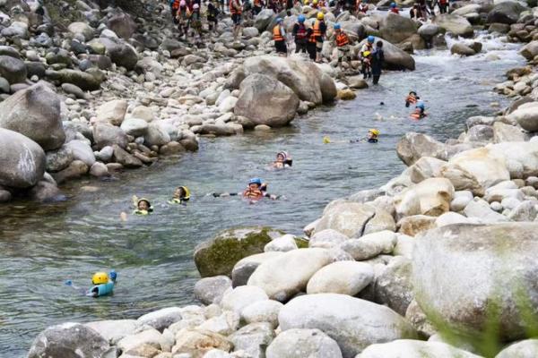 在廣西桂林貓兒山景區(qū),一種被稱為“窩囊漂”的旅游項(xiàng)目人氣頗旺。這一項(xiàng)目區(qū)別于傳統(tǒng)主打驚險(xiǎn)刺激的漂流,以慢節(jié)奏、松弛感為調(diào)性,游客可以臥躺在水面,享受漂流樂趣。