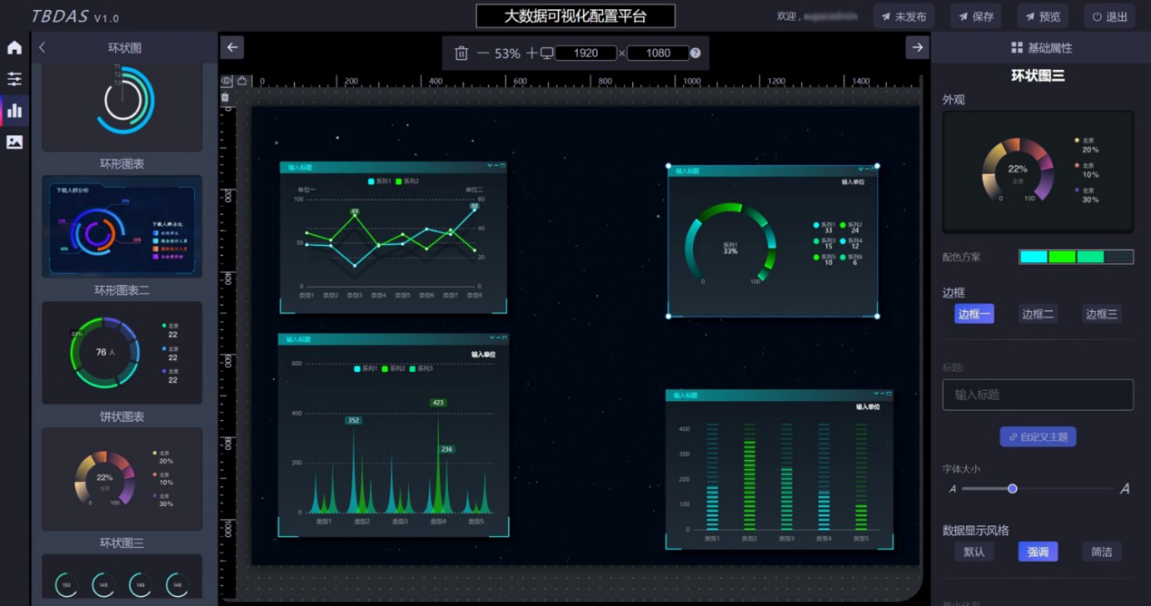 平臺內(nèi)設(shè)有各類可視化元素和統(tǒng)計圖,通過設(shè)計與搭配,可生成出多種可視化效果。不同組件可自由組合,制作出各類交互式常規(guī)屏和大屏報表,給用戶帶來震撼的視覺體驗。