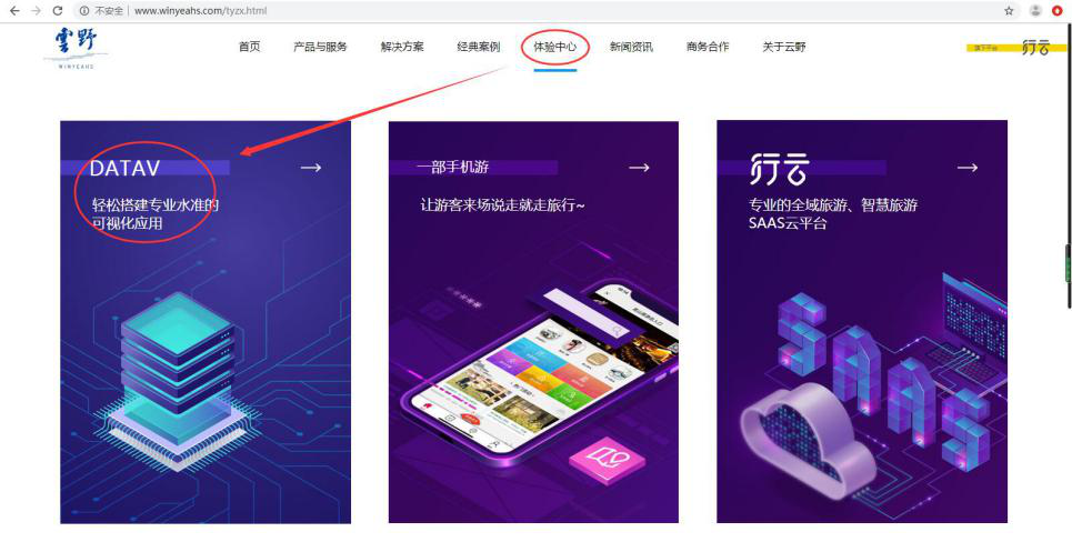 下面就簡單的介紹下云野自身研發(fā)的“大數(shù)據(jù)可視化配置平臺”的功能,如需要直接體驗的用戶可登入官網(wǎng)www.mojjis.com,點擊導(dǎo)航欄“體驗中心”--- “DATAV”即可進入搭建界面,設(shè)計專屬的大數(shù)據(jù)可視化配置。