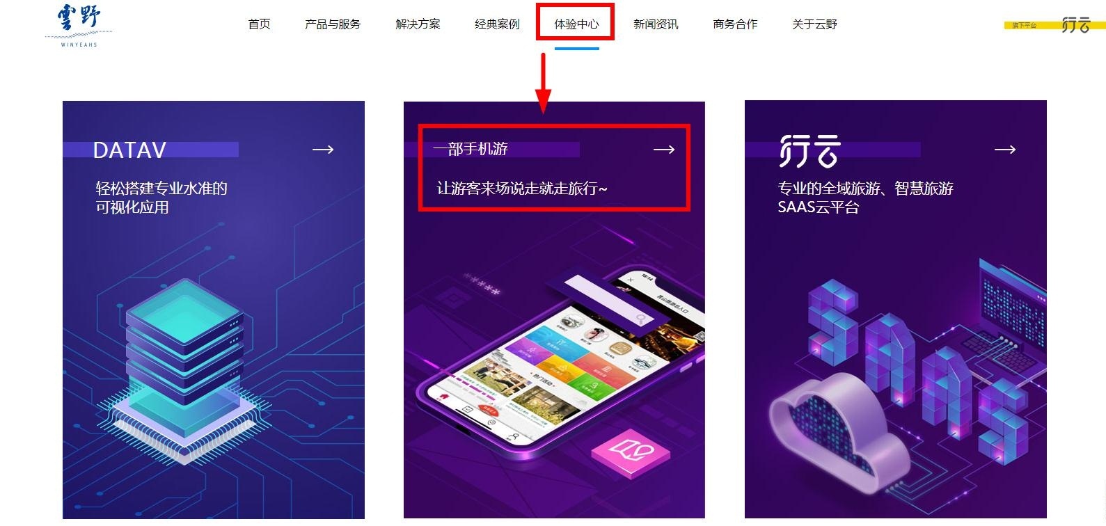 下面介紹下云野的“一部手機(jī)游”景區(qū)管理平臺(tái)軟件特色功能,如需要直接體驗(yàn)的用戶可登入官網(wǎng)www.mojjis.com,點(diǎn)擊導(dǎo)航欄“體驗(yàn)中心”-------- “一部手機(jī)游”即可體驗(yàn)。